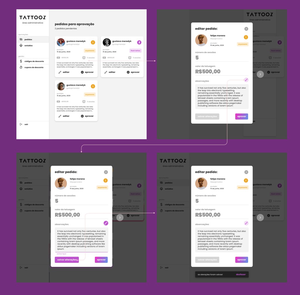 Since the beginning of the project, the need for an administrative area had already been contemplated. However, so far, the only process that this area would include would be the approval of tattoo artist profiles. Our stakeholders chose to carry out this process mechanically, through emails, and prioritized other functionalities for the platform.